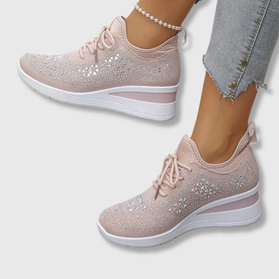 Lucía spor ayakkabıları, ortopedik konforu modern zarafetle buluşturuyor. Nefes alan dokusu ve yastıklı desteğiyle ayaklarınızı gün boyu ferah ve rahat tutarken, zarif ışıltısı hem casual hem de daha şık görünümlere sofistike bir dokunuş katıyor.